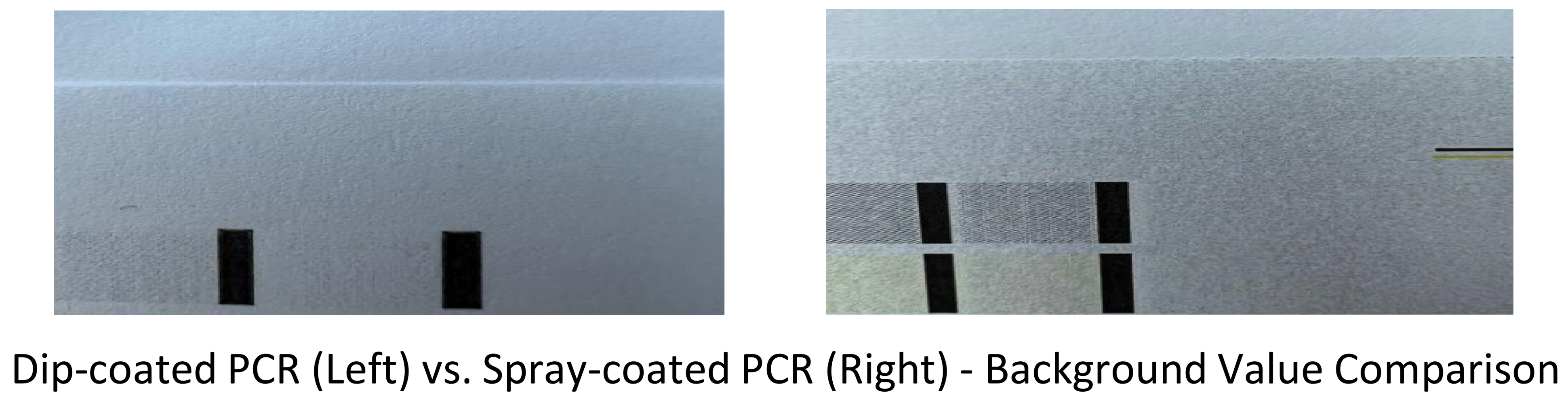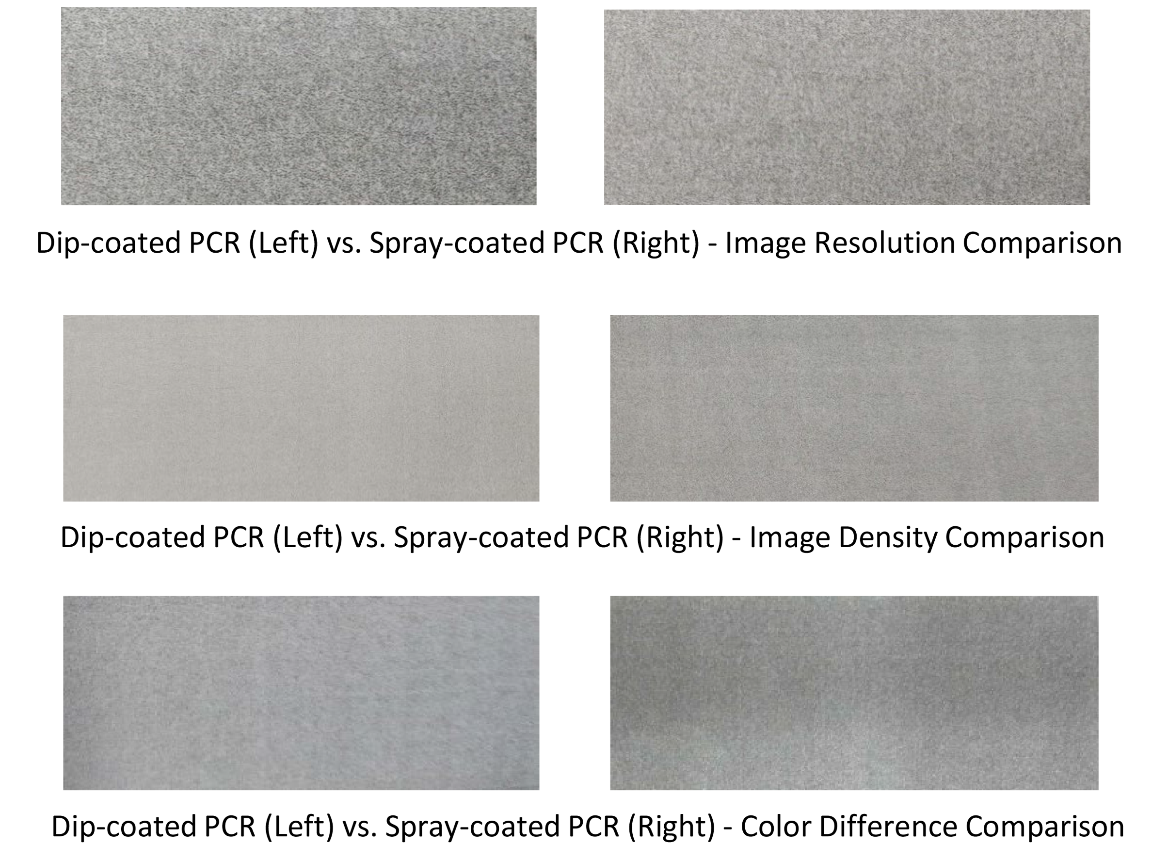 Density Control: Spray coating, due to droplet size variations during atomization, causes variations in coating thickness, leading to uneven image density. In contrast, dip coating achieves nanoscale precision in thickness control through precise control of coating viscosity and immersion time. Test data shows that dip-coated PCR exhibits significantly lower density standard deviation compared to spray-coated versions, ensuring consistent density from the first to the last print while enhancing print quality stability.