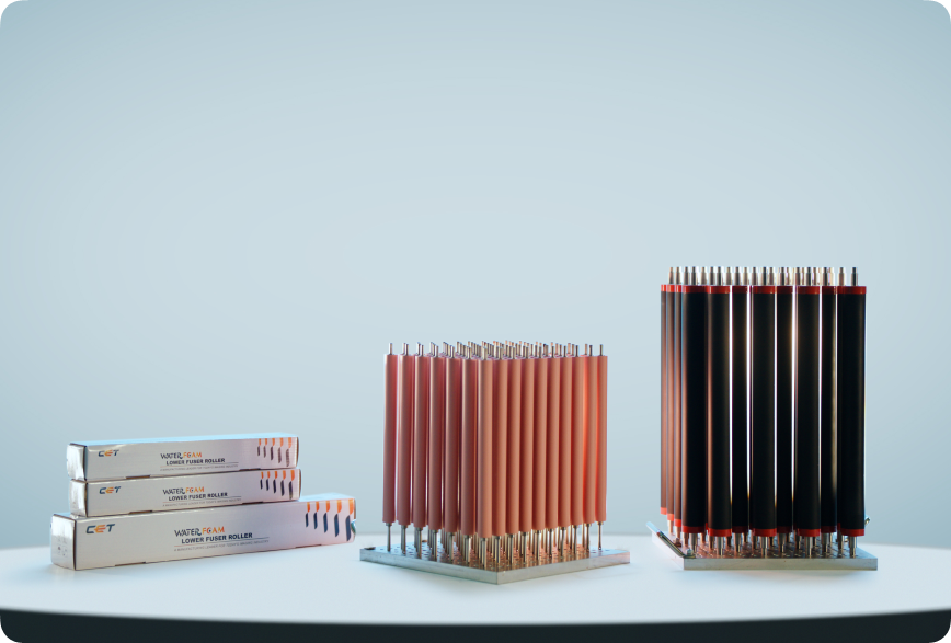 During the exhibition, CET presented products compatible with mainstream office imaging equipment models for Canon, Kyocera, Ricoh, HP, and other leading brands. The company’s extensive product portfolio includes new-build compatible drum units, fuser assemblies, maintenance kits, toner cartridges, bulk toners, spare parts, and more. Specifically tailored to local market demand, CET showcased a comprehensive range of frequently used replacement items for Kyocera MA4000x series models, providing cost-effective solutions to customers. Meanwhile, the water foam lower fuser roller for Canon models drew significant attention for its technical excellence and improved performance. Through proprietary R&D, CET was able to solve common fusing defects by curing the roller to achieve a hundred-nanometer, joint-pore foaming structure. This ensures the roller maintains constant shape and stability during use with a compression deformation rate as low as 5%, resulting in superior fusing performance and an extended lifespan.
