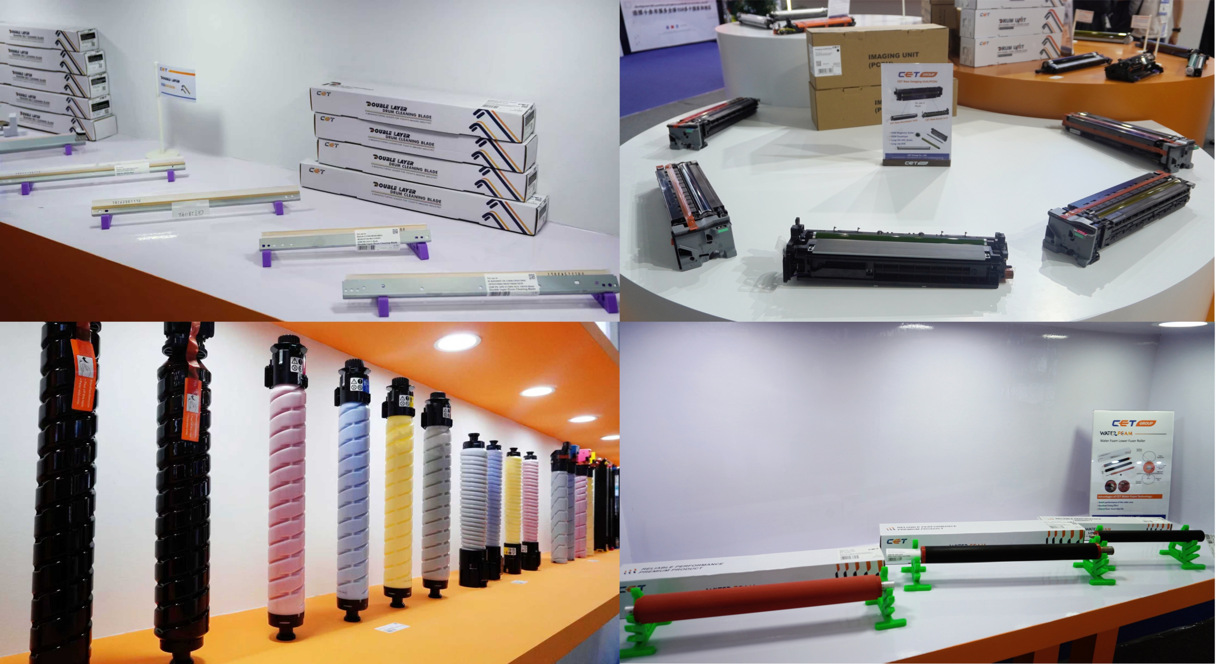 在本次展出的产品矩阵中,CET重点展示了套鼓及成像组件、定影器、成品卡匣、碳粉、双层鼓清洁刮板、水发泡下定影辊等“拳头产品”。这些产品是CET长期研发投入的成果,通过不断提升产品精密度、使用寿命和稳定性,满足了当今市场对兼容耗材产品高效率、高品质、高兼容性的打印需求,并在长期市场验证中,获得了全球客户的广泛认可。